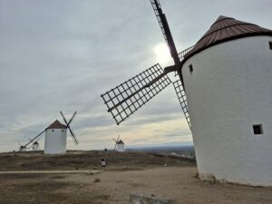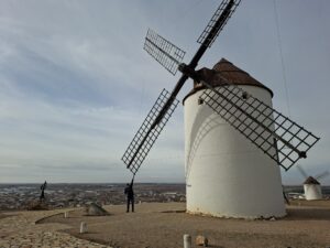 El primero de enero del año 2026 fuimos a Mota del Cuervo donde hay 7 molinos de viento. ¿Serán estos molinos los que le inspiraron a Cervantes? No puedo creer que dondequiera que haya un cerro en esta región de la Mancha, hay molinos de viento.