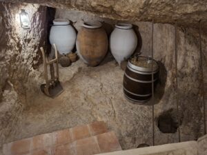 No es un palacio como se imaginaba Don Quijote pero sí una residencia bastante grande. Atrás de la cocina tenían una bodega con tinajas grandes para guardar vino, aceite etc. En El Toboso se producían tinajas en el siglo XVI.